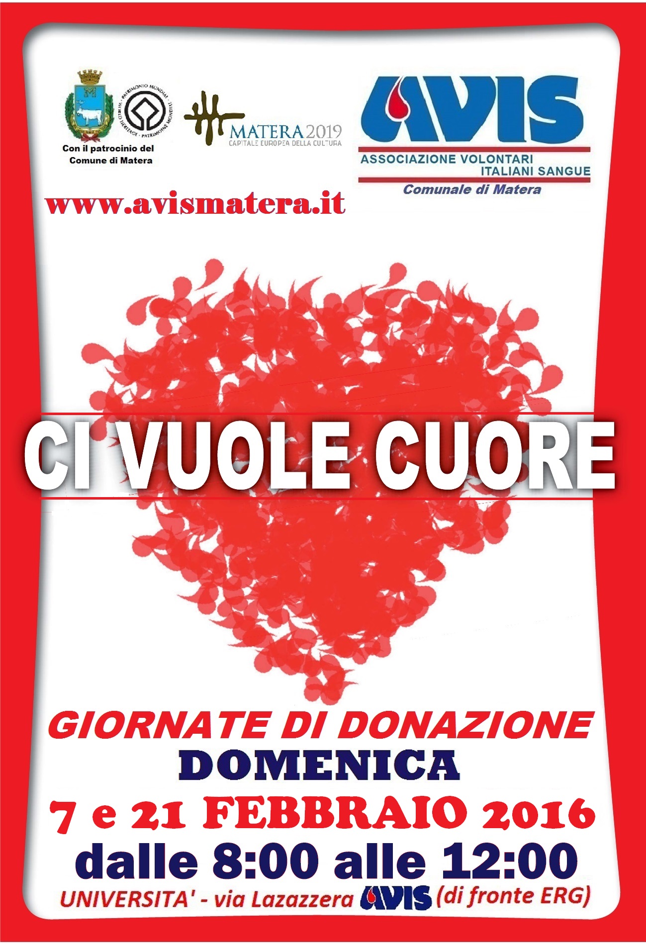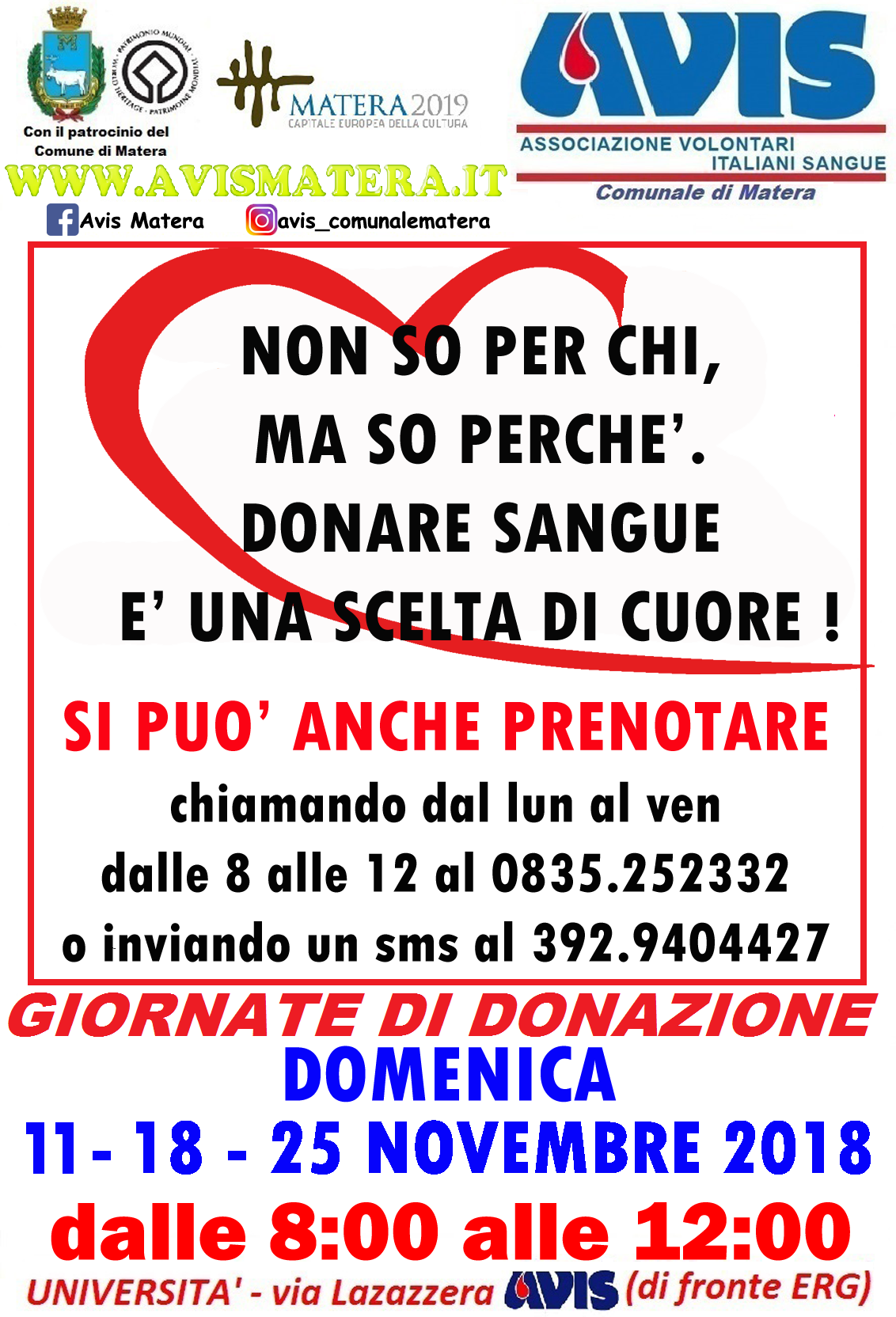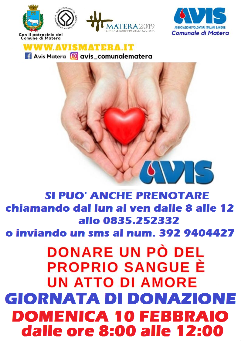 - Contatta la segreteria AVIS Matera per conoscere la prima data utile.